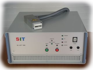 Hochspannungsgenerator SIJET 501 mit Freistrahlentladung zur Vorbehandlung von Oberflächen unterschiedlichster Form. Dieses Gerät ist auch als Zwei-Kanalgerät unter der Bezeichnung SIJET 502 lieferbar.